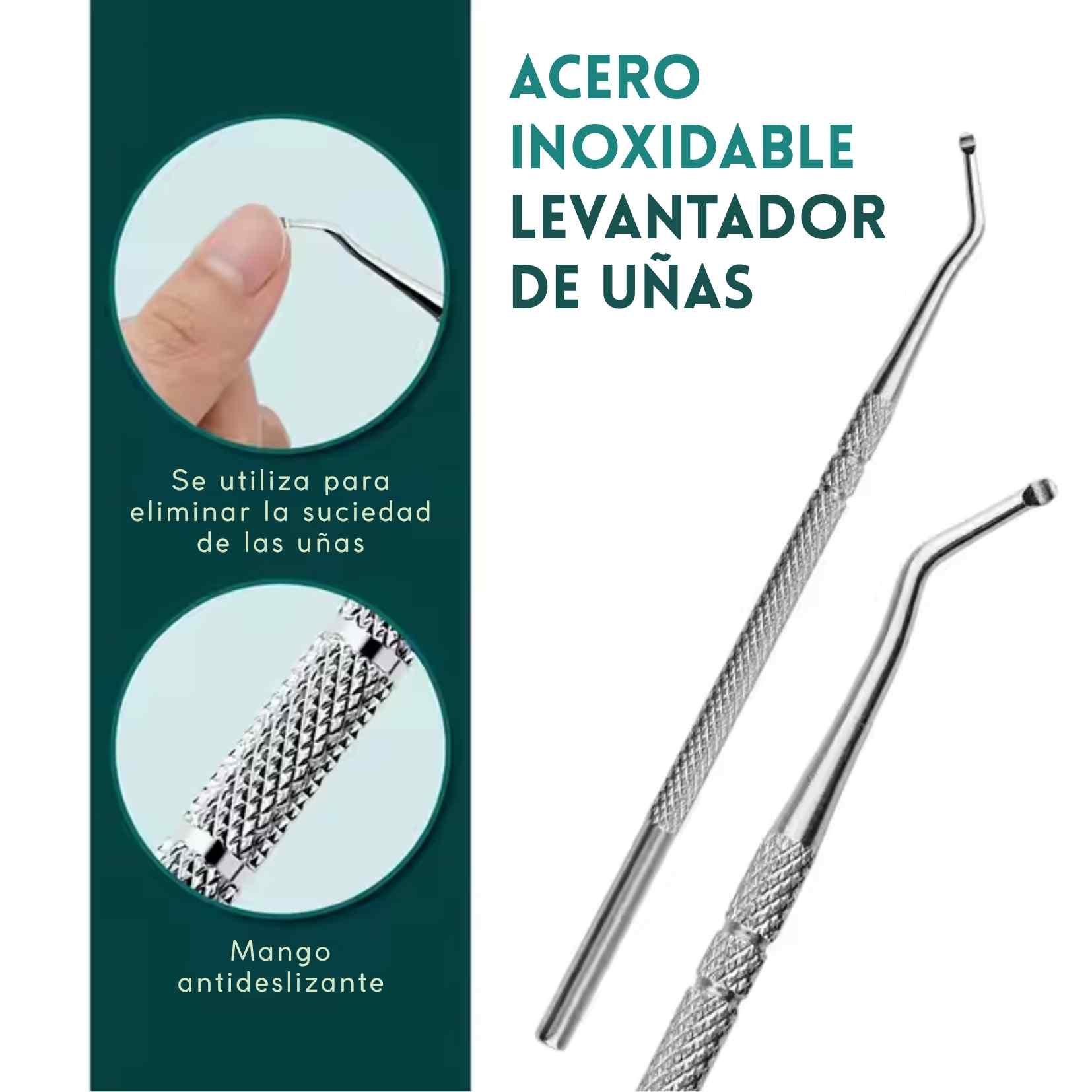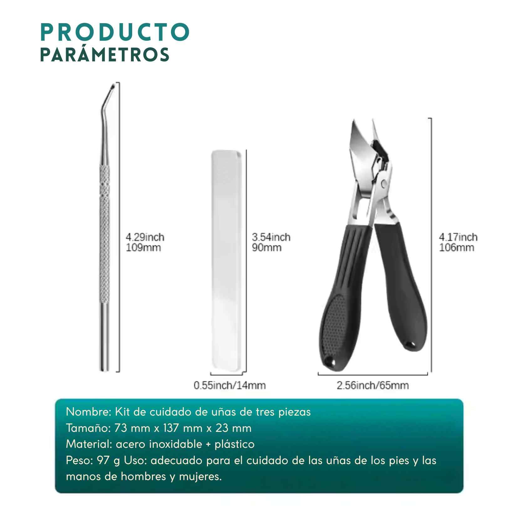 - 🔹 Incluye:✂️ Cortauñas de precisión🪞 Lima contorneadora🛠️ Espátula podológica