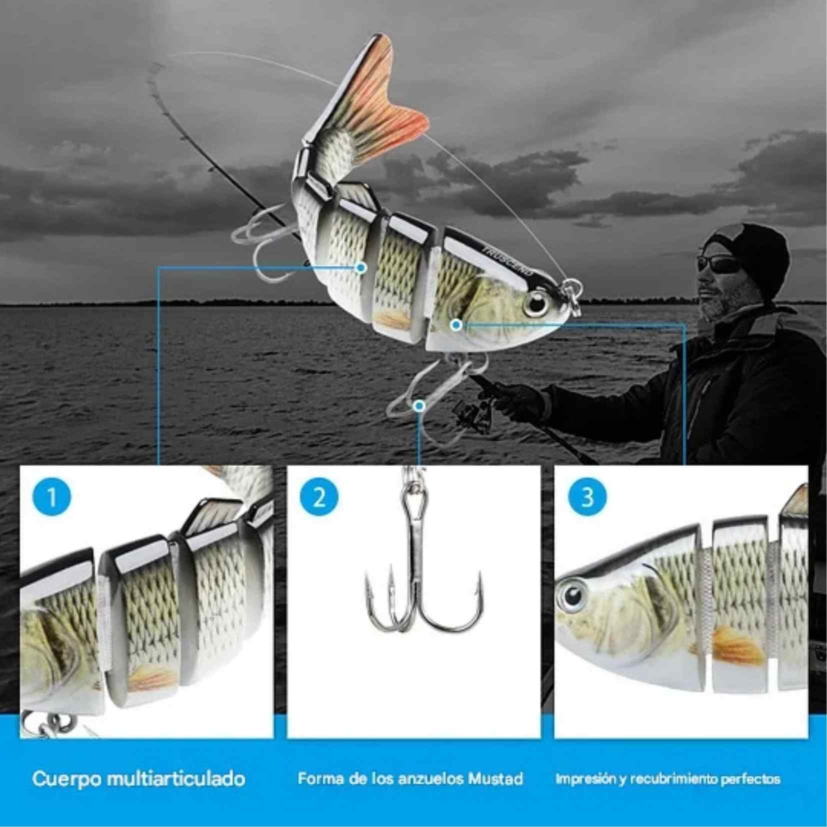 • 🎣 Movimiento Ultra Realista: Cuerpo articulado de 6 segmentos que imita el nado natural.