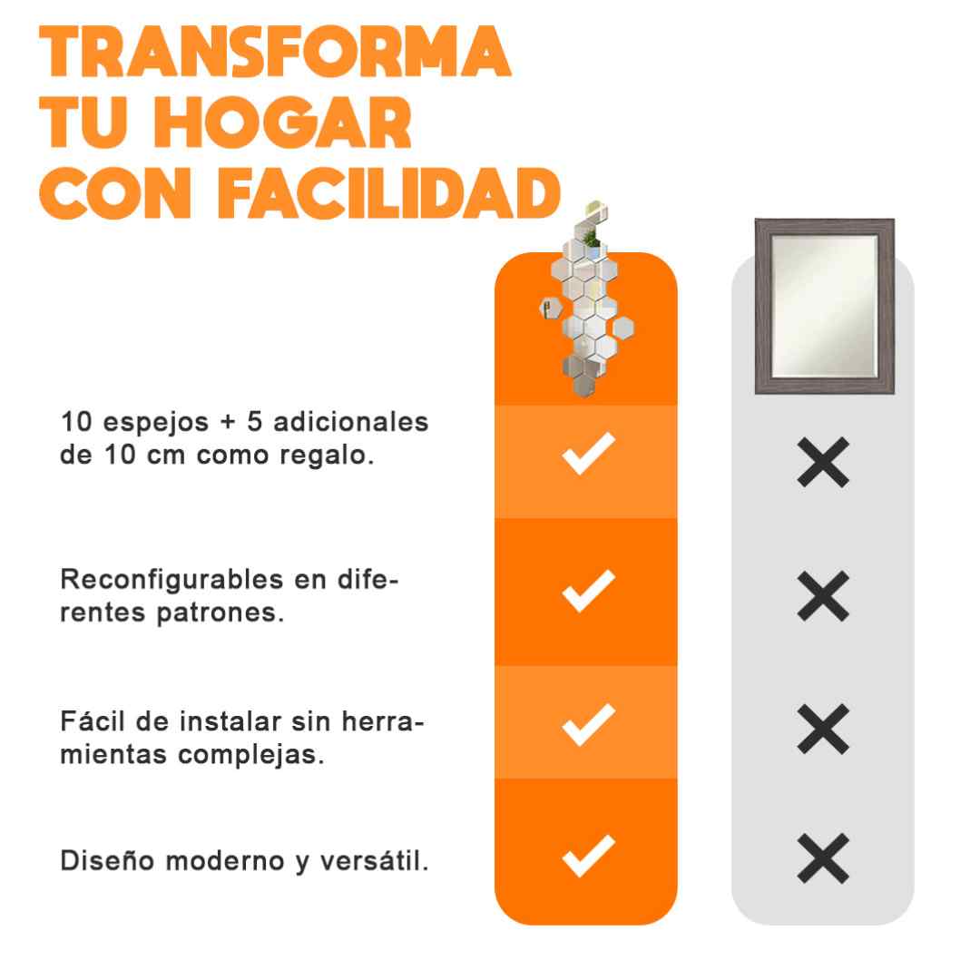 🔷Amplía visualmente el espacio: Reflejan luz y dan profundidad.