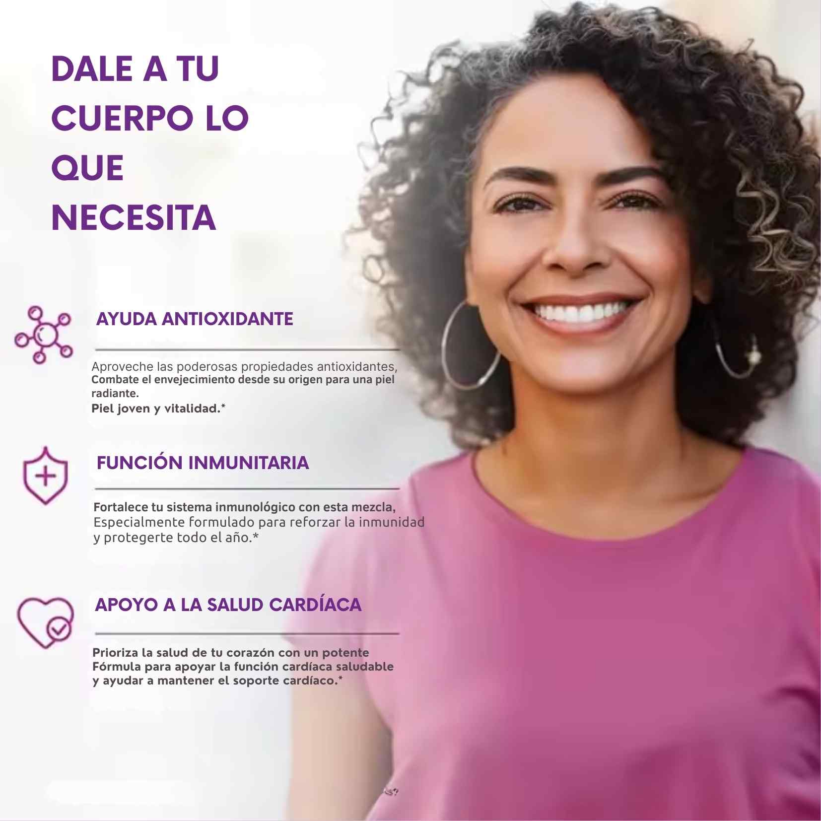 • 🛡️ Vitamina C, E y Zinc que fortalecen defensas y combaten radicales libres