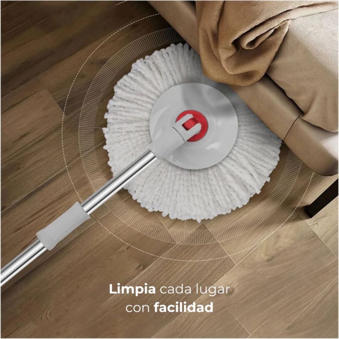 UNA HERRAMIENTA INNOVADORA. Dile adiós a las manos mojadas ya la suciedad atrapada. Con el Trapeador Giratorio 360°, mantén tu hogar impecable sin esfuerzo extra pues llega a cualquier lugar.