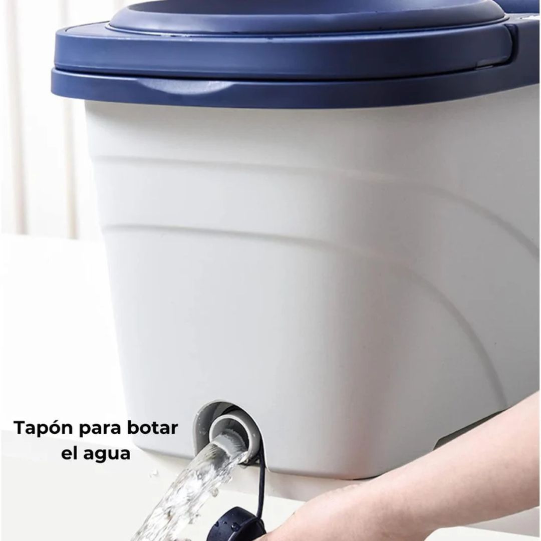 El balde es compacto y cabe fácilmente en cualquier rincón del baño o la cocina. Es ideal para quienes tienen poco espacio.